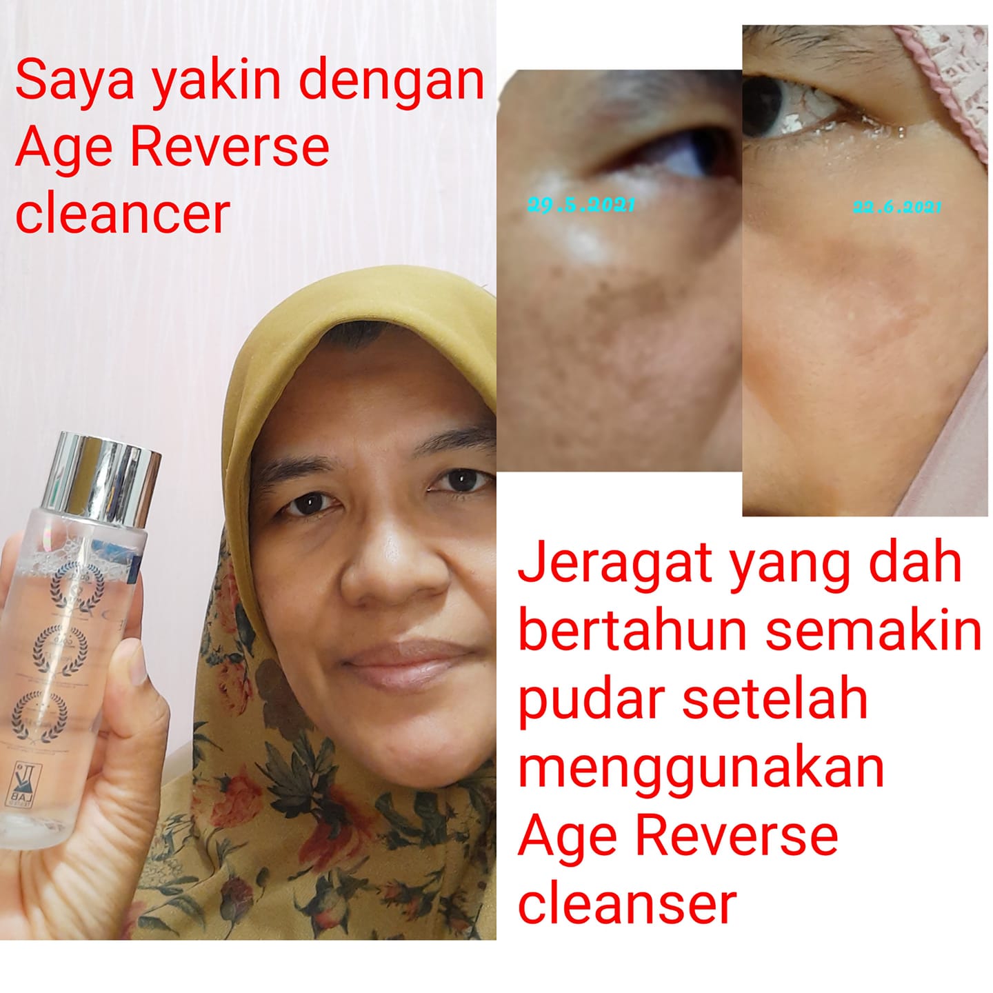 Sebab, Age-Reverse Cleanser akan membersihkan kulit muka anda dari semua jenis kotoran, makeup, minyak, peluh, daki. Serta memberikan kulit muka idaman anda tanpa rawatan laser yang mahal, facial treatment yang menyakitkan, rutin skincare yang melecehkan.